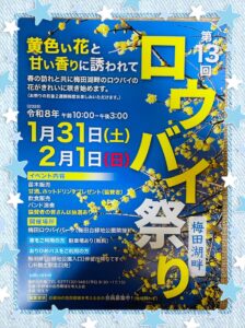 *2026年第13回のロウバイ祭り* 梅田湖畔のロウバイパーク 春を待つ季節になり 今年も梅田湖ロウバイパークで 【第10回ロウバイ祭り】が開催されました *2025年は第12回を迎えて 2/1(土) ...